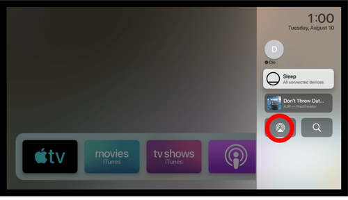 Press and hold the TV button on your Apple TV remote to open Control Center